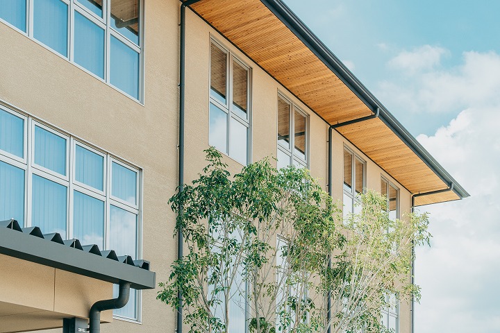 つながりで包み込むやさしいYakultをコンセプトに、コストや環境配慮の点から木造を提案したところ賛同いただけ奈良県内では珍しい木造3階建ての事務所になっています。